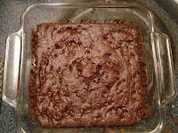 As January is coming to an end, I realized I hadn't yet made anything off of my resolution list. I thought I was going to make a pie, but then changed my mind. I would make brownies, from scratch. We have small group tomorrow, so I would just make them for dessert. Now, some would say, Rachel, you can't eat brownies! Don't they have dairy in them? Well, I made dairy-free and gluten-free brownies. (Thanks to Mary Beth for the flour and xantham gum.) Alia poured all the dry ingredients into the bowl and then stirred them up.